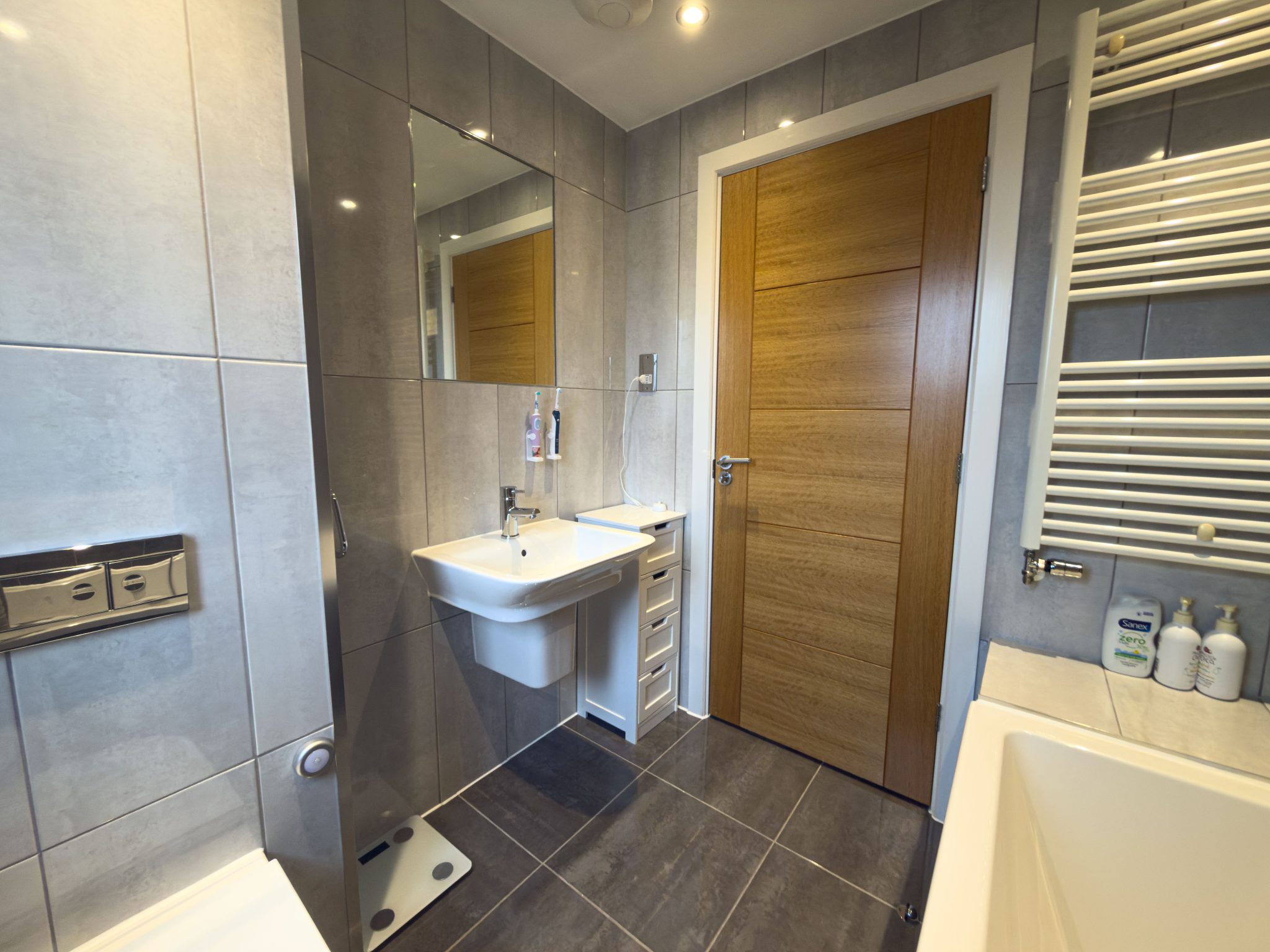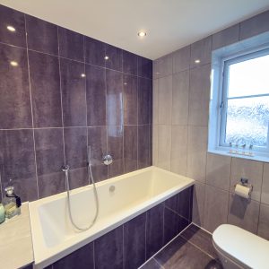 The property features three well proportioned bedrooms, each offering quality flooring and generous storage solutions (including a dressing area with built in wardrobe space in the main bedroom). The contemporary family bathroom is fitted with a bath with shower over, complemented by tasteful tiling and chrome fittings as well as the en suite shower room to the main bedroom. Additional benefits include Hive controlled gas central heating for each individual floor, underfloor heating on the ground floor, double glazing throughout and a practical layout designed to maximise space and functionality. The property also boasts driveway parking, providing convenient off-road space for vehicles. With its high quality finishes, thoughtfully arranged interiors and prime location near essential amenities, this home presents an excellent opportunity for families and professionals seeking a move-in ready property in a sought after area.