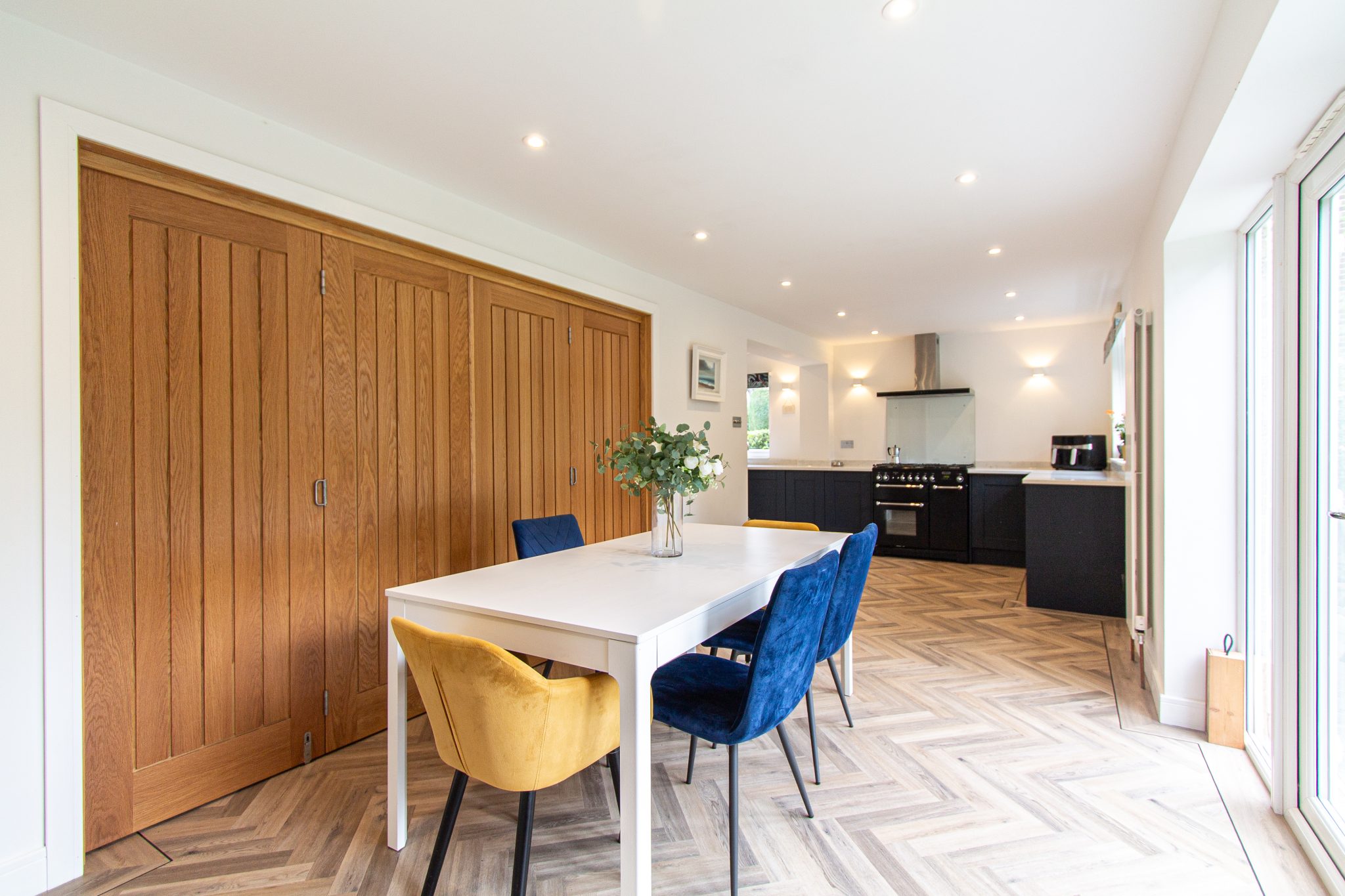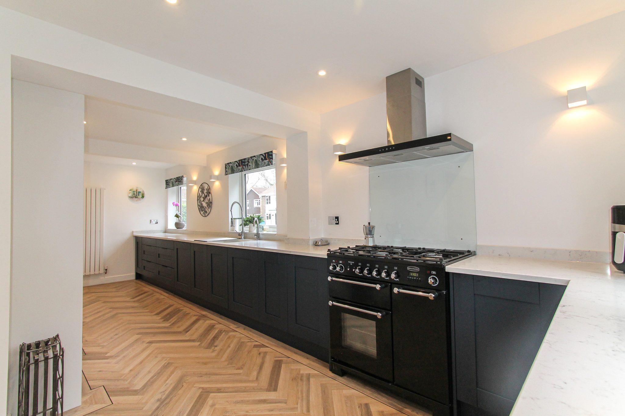 Upstairs, there are five well-proportioned bedrooms, including a principal bedroom with an en-suite shower room for added convenience. The further four bedrooms are served by a stylish family bathroom, making this home perfectly suited to growing families or those seeking flexible space for a home office or guest accommodation.