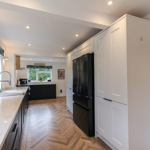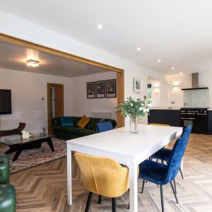 The ground floor features a spacious entrance hall leading to a bright and airy living room, complemented by an open plan kitchen and dining area that creates a sociable hub at the heart of the home. The contemporary kitchen is well-appointed with ample storage and integrated appliances, while large windows and patio doors provide plenty of natural light and easy access to the garden.
