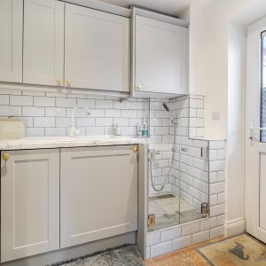 There is a further reception room currently used as a study, along with a generous utility/boot room with built-in storage and a dog shower, plus an additional cloakroom.