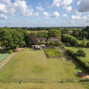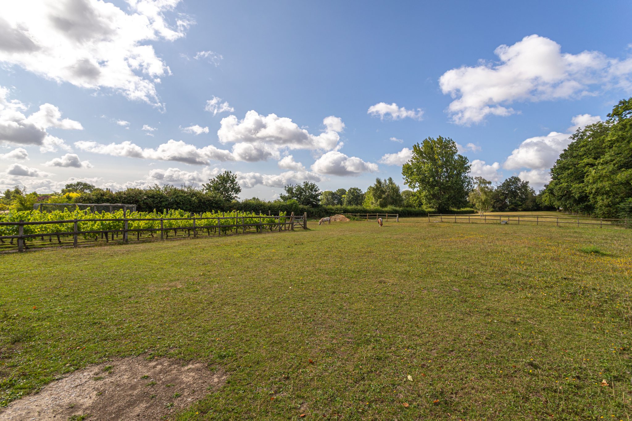 Approximately 2.5 acres of paddock land with stable block, storage barn, vegetable garden and small vineyard in the heart of Dogmersfield.