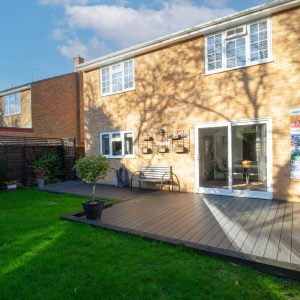 Externally, the property enjoys a private rear garden enclosed by shrubs, hedging and fence panelling providing a pleasant space for outdoor entertaining and family enjoyment. A composite decking area can be accessed via the French doors from the Kitchen/ Dining room with rest being predominately laid to lawn. To the front, there is driveway parking for two vehicles.