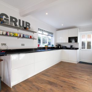 The ground floor provides generous and flexible living space, comprising a bay-fronted reception room, creating a bright and welcoming principal living area. To the rear, the impressive kitchen/dining room features an extensive range of fitted units and ample space for a family dining table. In addition, a family room offers further versatility, ideal as a playroom, home office or snug. A downstairs cloakroom completes the ground floor accommodation.