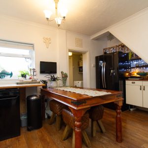 Inside, the bright reception room features laminated wood effect flooring and a character fireplace, creating a comfortable space for relaxing or entertaining. The modern kitchen offers sleek units, plenty of natural light, and a cosy dining area..