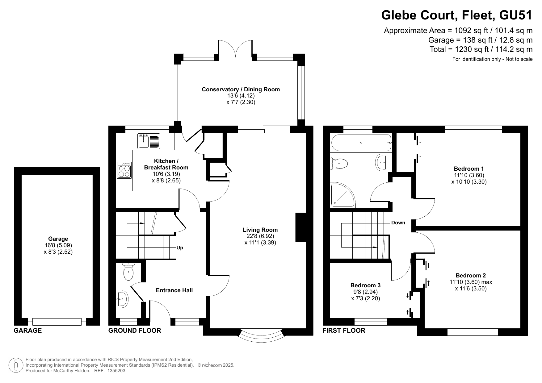 To the rear is a private, enclosed garden, providing an ideal outdoor space for relaxation or entertaining. A garage is located in a nearby block, offering secure parking or additional storage, with further residents’ parking available close by. The property enjoys a convenient location within easy reach of Fleet’s shops, schools and transport connections, making it a practical choice for commuters and families alike.