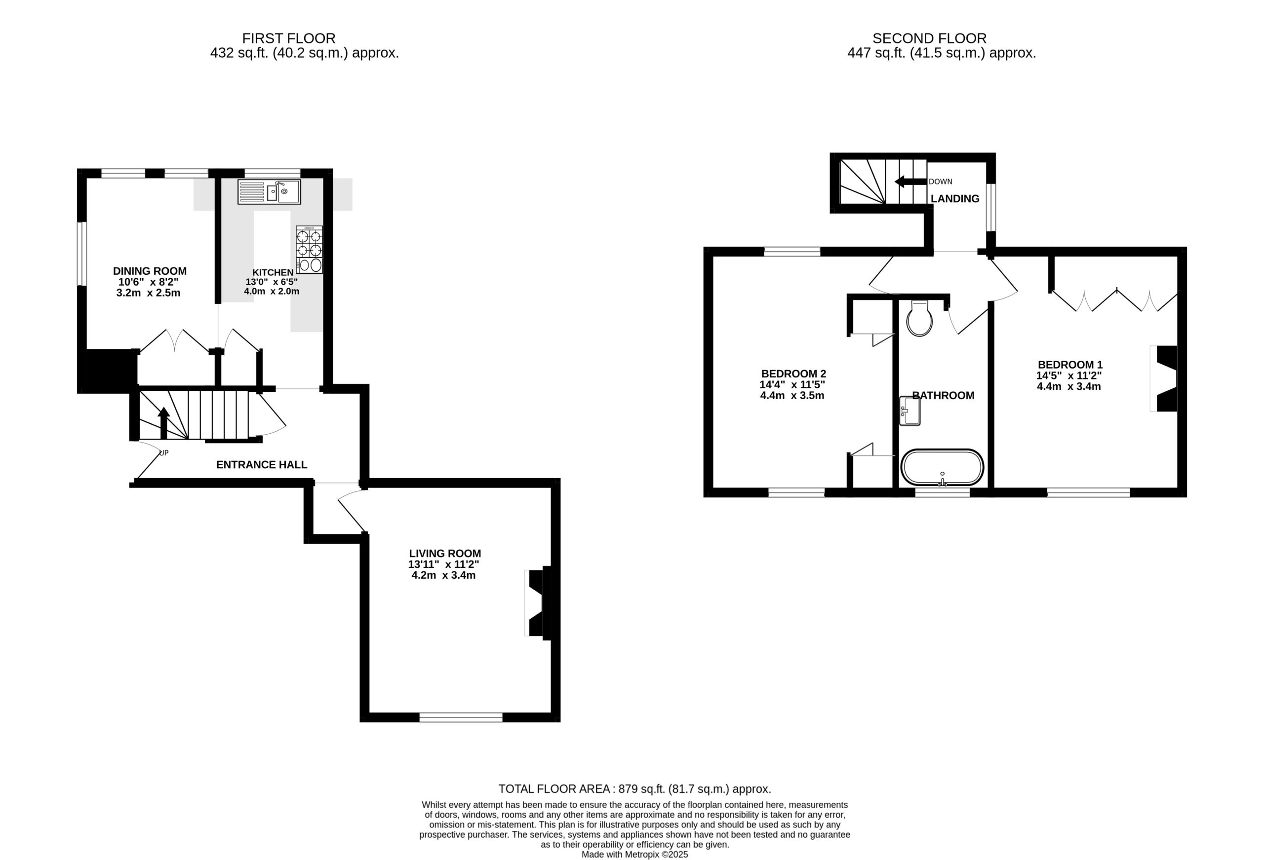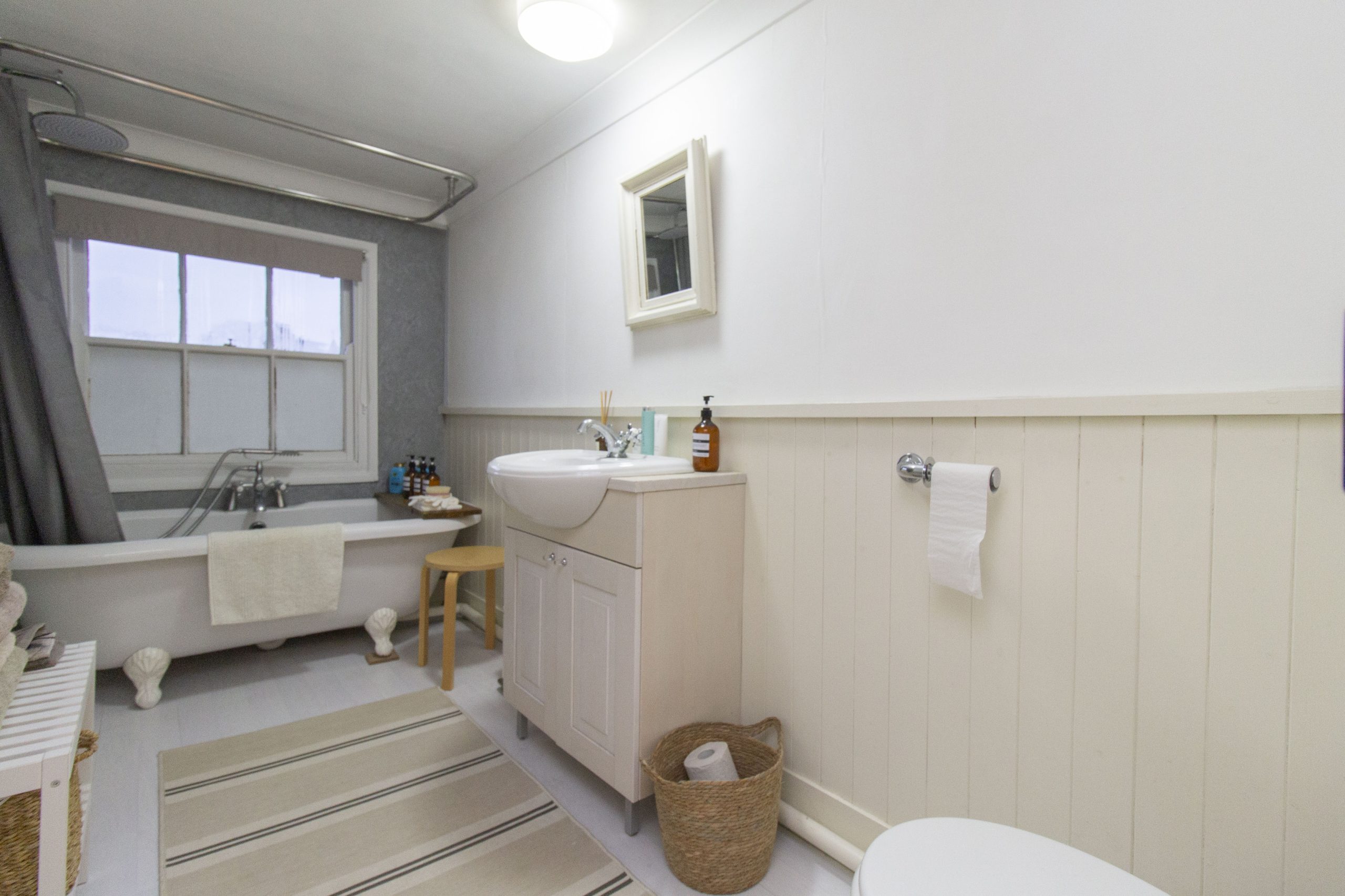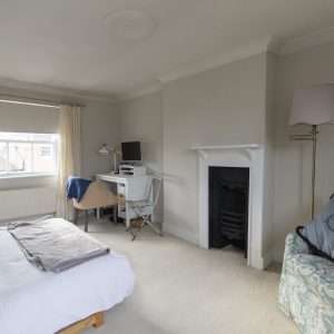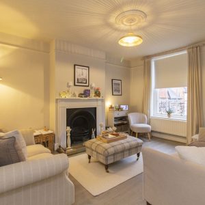 The second floor offers two well-proportioned bedrooms, with the principal bedroom benefiting from built-in wardrobes. There is an elegant bathroom with free-standing bath and shower over.