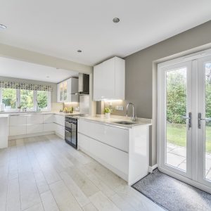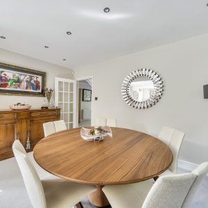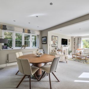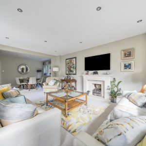 The property opens into a welcoming hallway with a cloakroom and study. The ground floor accommodation features an impressive open-plan lounge and dining room, creating a light and versatile space for entertaining and everyday family life. A modernised kitchen/breakfast room provides a stylish and practical heart of the home.