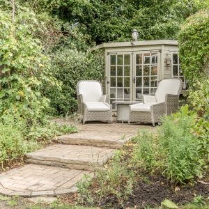 The property enjoys a beautifully landscaped south-facing garden to the rear, extending to around a quarter of an acre. The outdoor space has been lovingly maintained and offers a tranquil setting for relaxation, dining, and play. With generous lawned areas and mature planting, it provides both privacy and scope for further development, subject to planning permission.