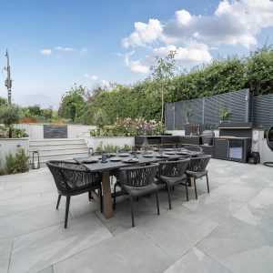 The rear garden has been beautifully landscaped by the current owners and is mainly laid to lawn with well-stocked flower beds, planting, trees and lighting. A stunning patio wraps around the sides and rear of the property with views over the garden, with a bespoke outside kitchen/BBQ area and amble space for seating/dining, making it a perfect place for entertaining or relaxing and enjoying the sunshine. To the other side of the property is a purpose-built pet shower. There is also a useful shed with electrics and power.