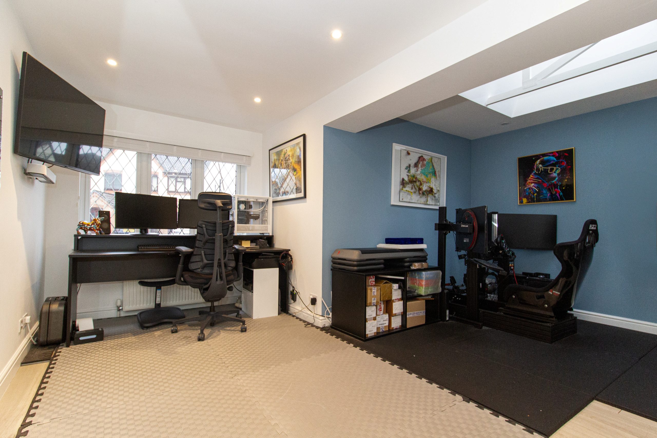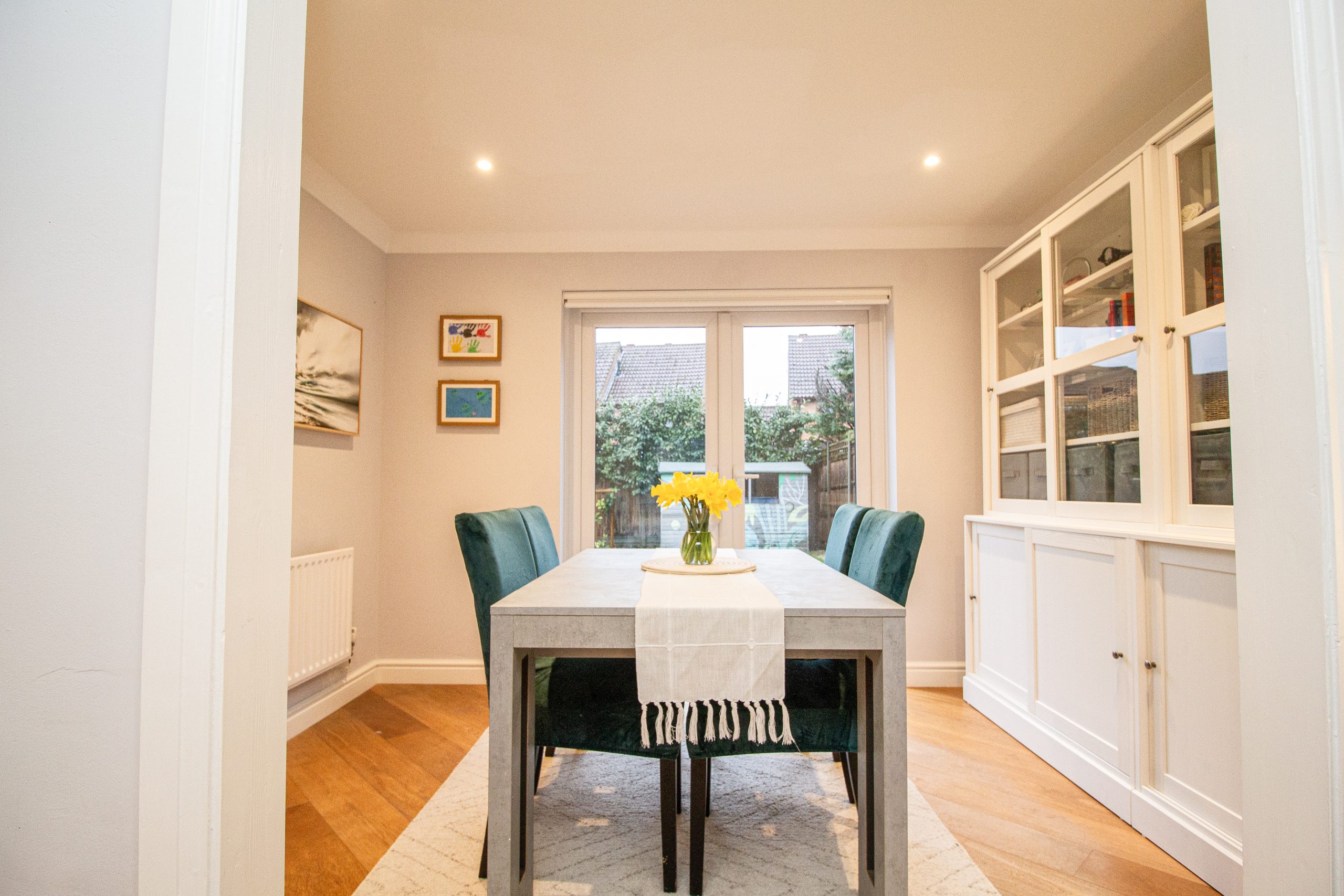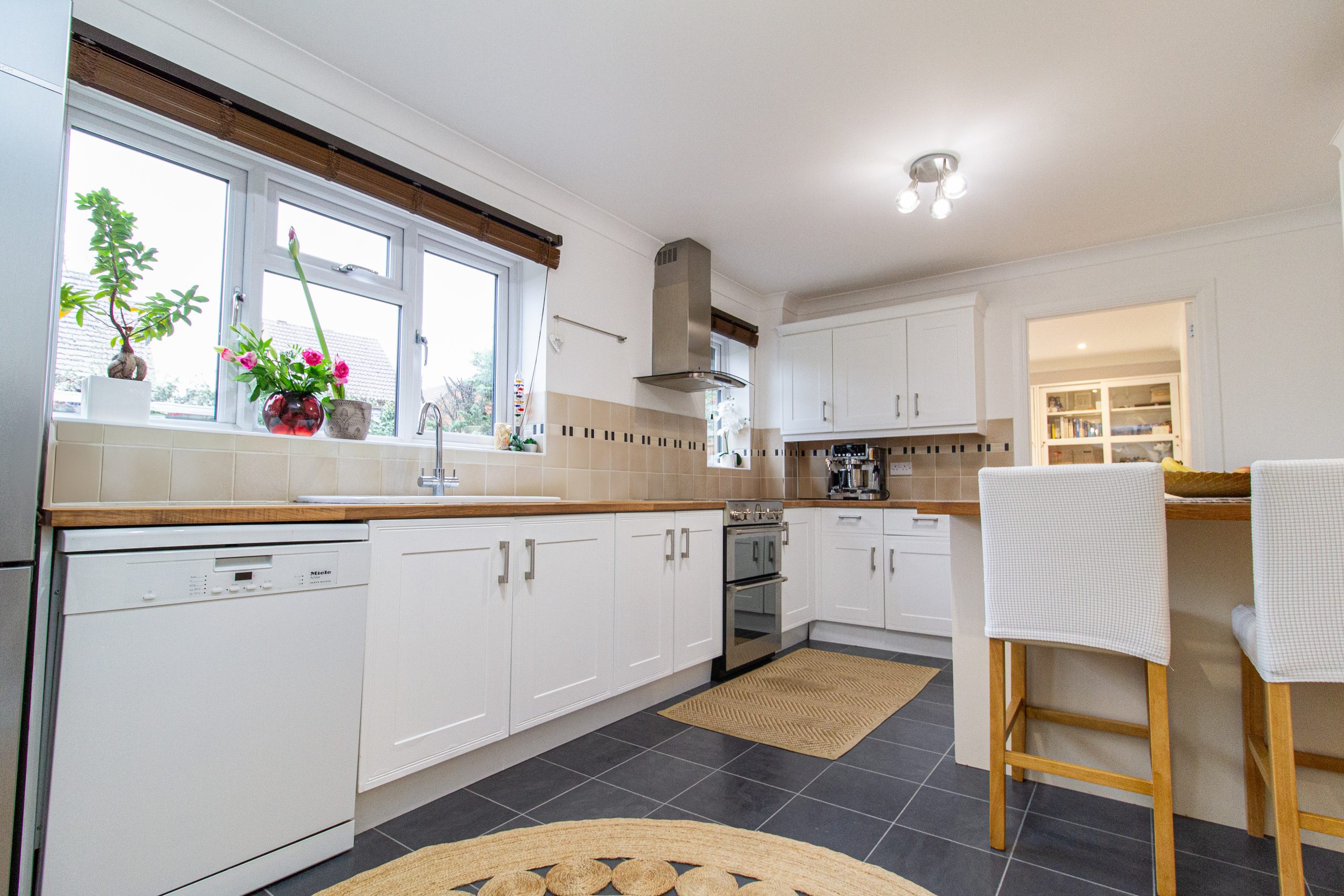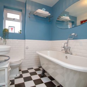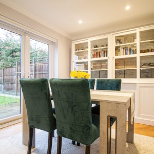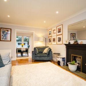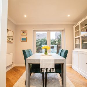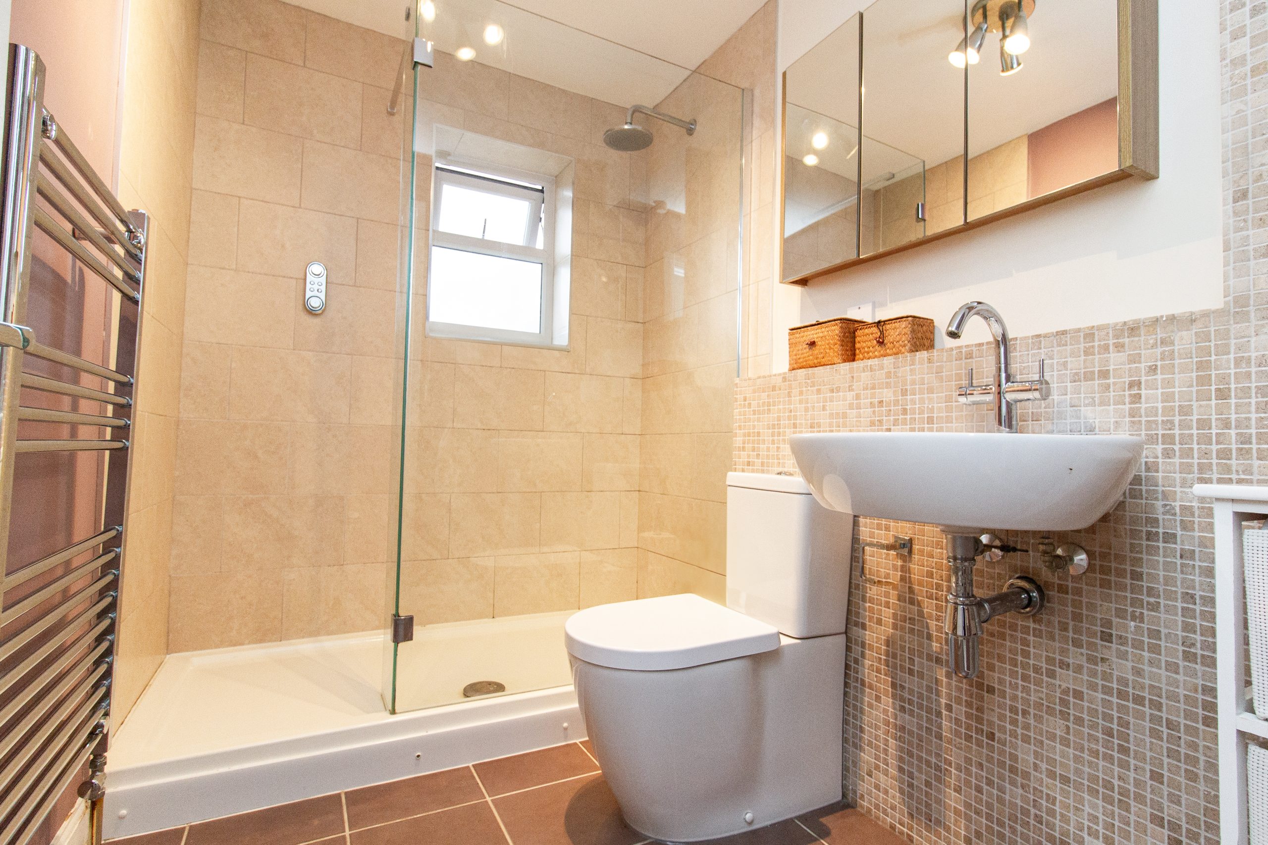 Upstairs, the property has four generous size bedrooms, each benefitting from excellent natural. The principal bedroom has an en-suite bathroom, while the remaining rooms are well suited to children, guests or home working. The two bathrooms are finished to a high standard, one featuring a statement freestanding bath and the other a contemporary walk-in shower, both complemented by sleek fittings, modern tiling and heated towel rails.