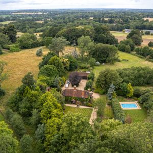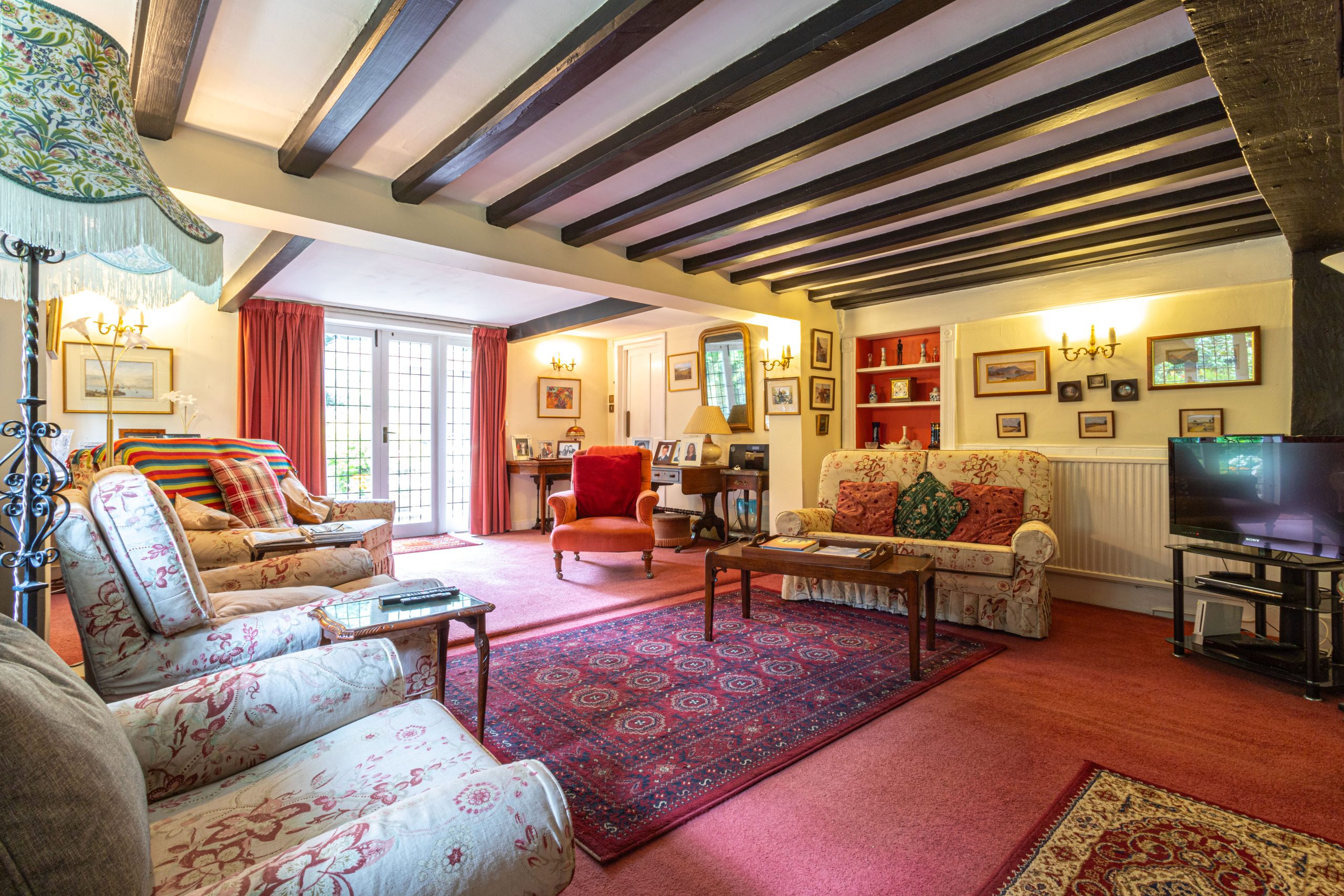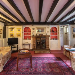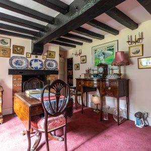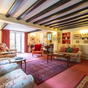 From the charming timber framed porch the frontdoor opens to an inner hall, leading to a generouslysized sitting room with an open fireplace and French doors leading out to a patio area and home office/summer house beyond.