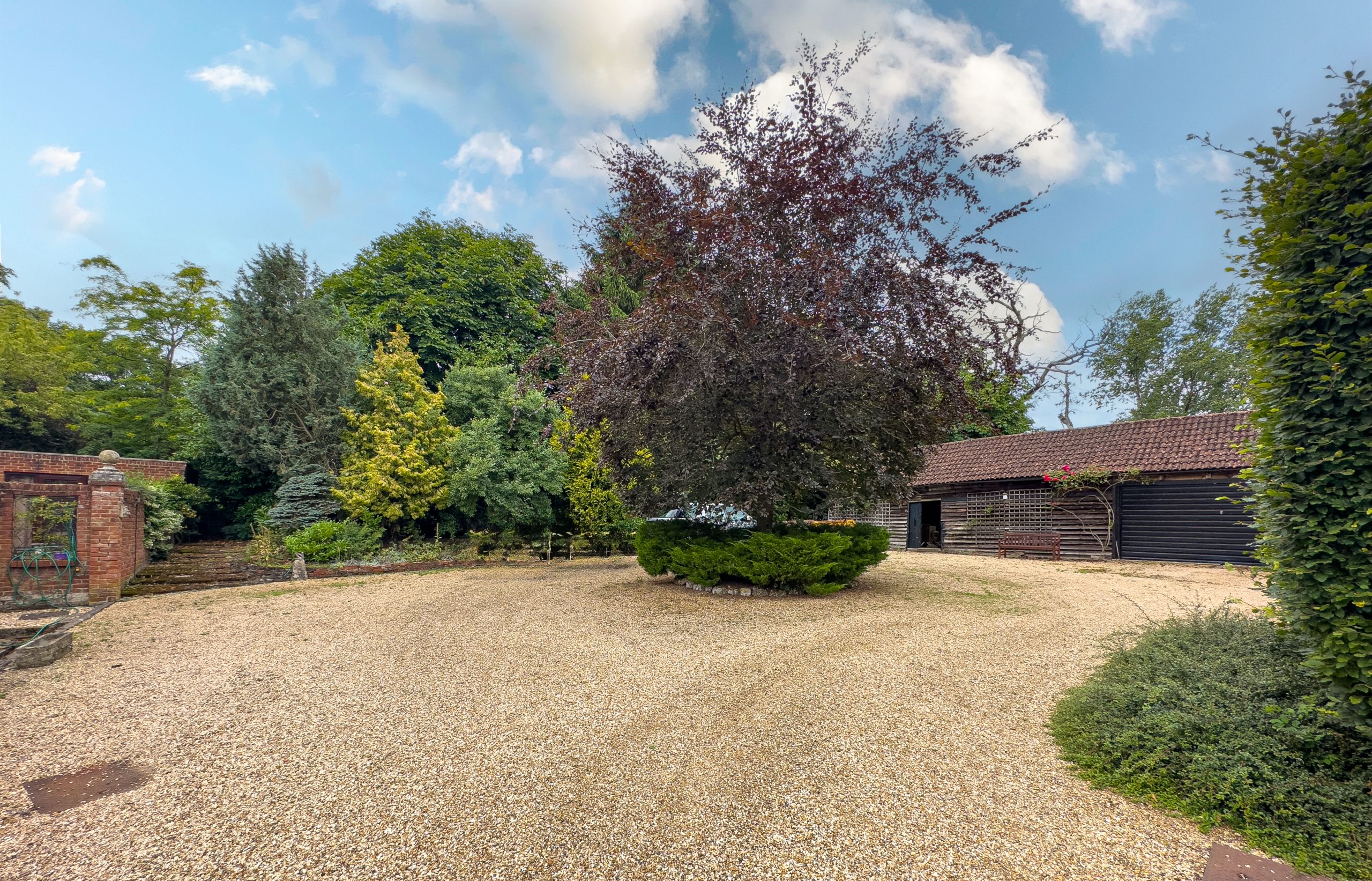 To the rear there is a large parking area next to the garage and barn with workshop.