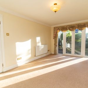 Occupying a mature corner plot, the garden is predominantly laid to lawn with an attractive selection of established planting and evergreen borders. A patio area to the rear of the property is accessed directly from the living room, ideal for outdoor dining and entertaining, with gated access to the front. To the front of the property is driveway parking leading to a single garage with an up and over door. The location also offers excellent access to outdoor pursuits, including the Basingstoke Canal, Caesars Camp and Fleet Pond. There is also access to visitor parking
