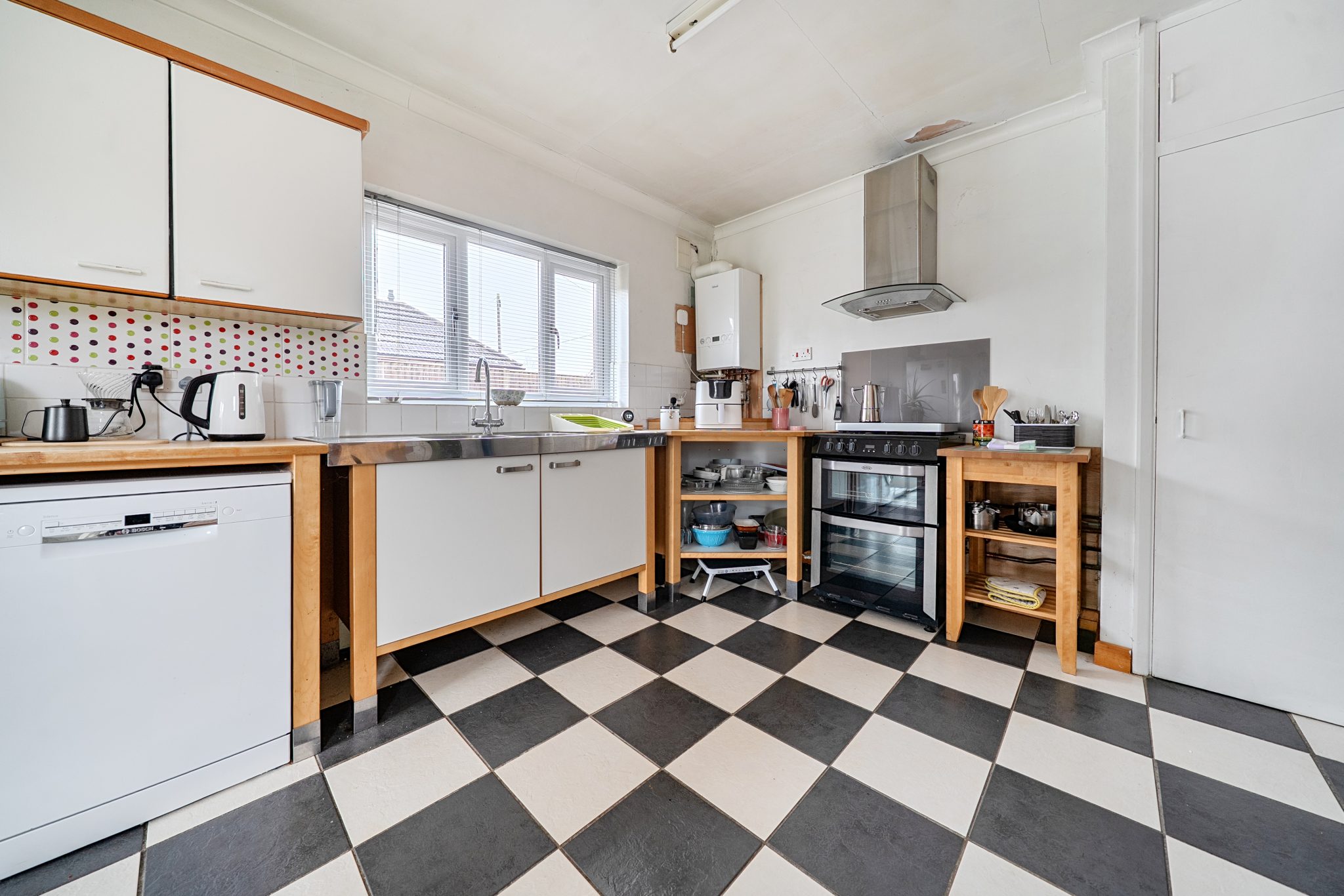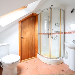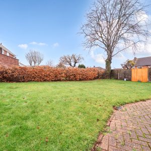 On the ground floor are two well-proportioned bedrooms, one benefiting from a built-in wardrobe, along with a family bathroom suite with an over-bath shower. Stairs lead to a further generous bedroom on the first floor, with an en-suite shower room.