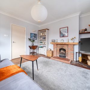 The hallway leads into a cosy living room with bay window and feature open fireplace. To the rear of the property is a bright and spacious partially fitted kitchen/dining room with patio doors opening onto the back garden.