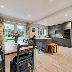 The welcoming entrance hall, which provides access to the integral double garage, leads through to the recently refurbished and well-appointed kitchen/dining room. This stylish space features integrated appliances, a breakfast bar and a separate utility area, with French doors from the dining area opening onto the attractive rear garden.