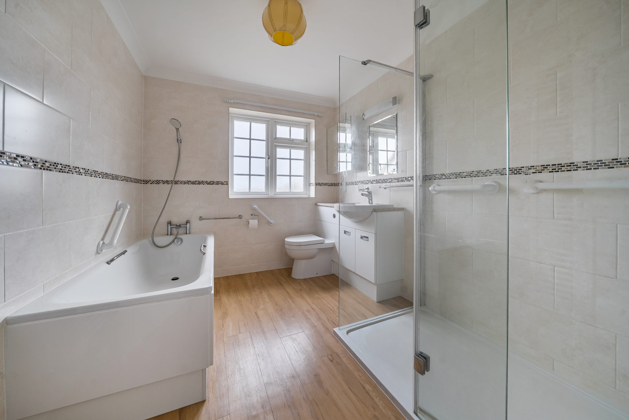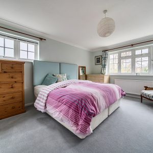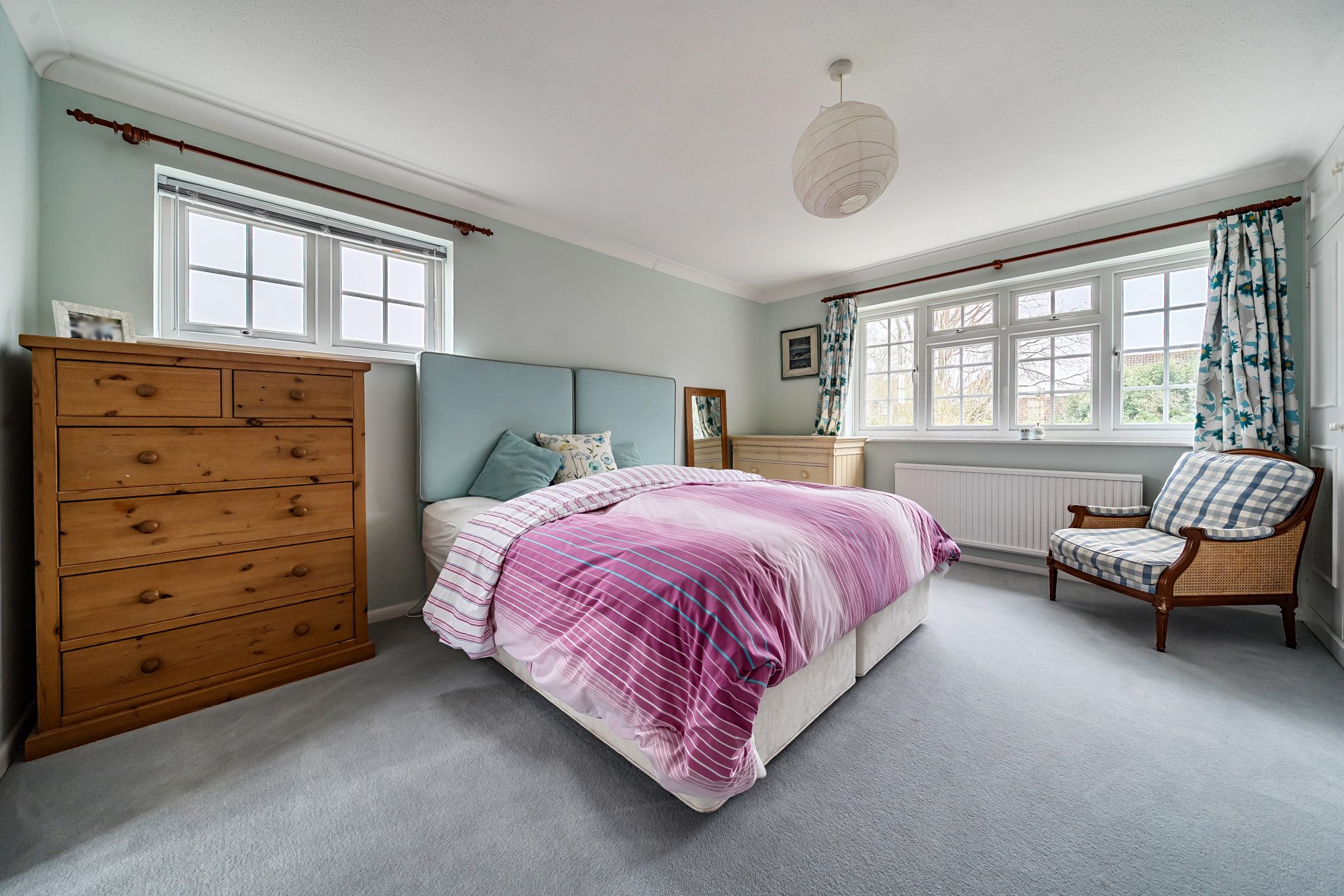 On the first floor, the light and airy landing leads to the principal bedroom, which features built-in wardrobes and a good sized en-suite shower room. There are three further well-proportioned bedrooms, all with built-in storage, along with a generous family bathroom complete with a separate shower.