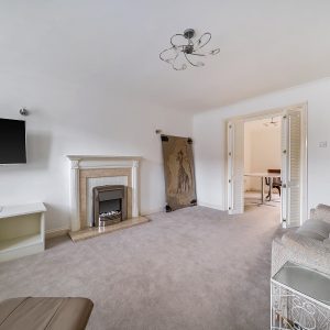 The spacious living room leads through to the dining room with double doors opening out into a sunny conservatory and access out to the rear of the property.