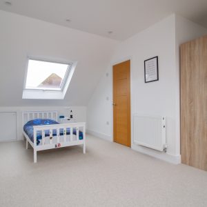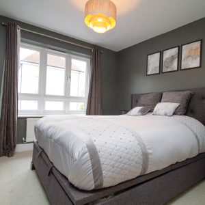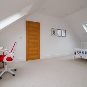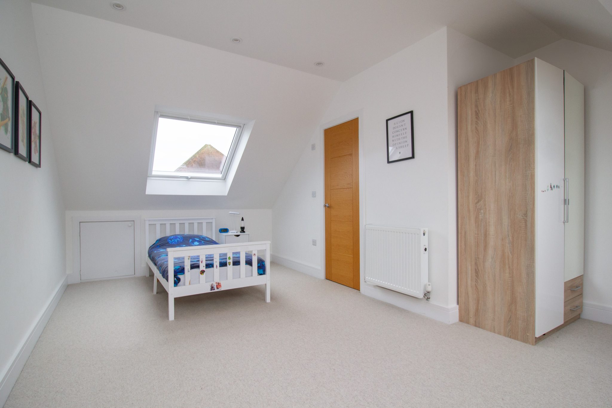 The first floor offers three well-proportioned bedrooms, including two comfortable rooms and a further principal bedroom that benefits from its own en-suite, all complemented by a modern family bathroom. The top floor is arranged as a private bedroom suite, boasting generous dimensions, integrated storage and a stylish en-suite shower room.