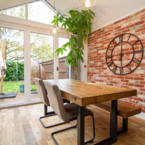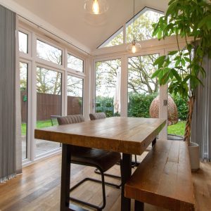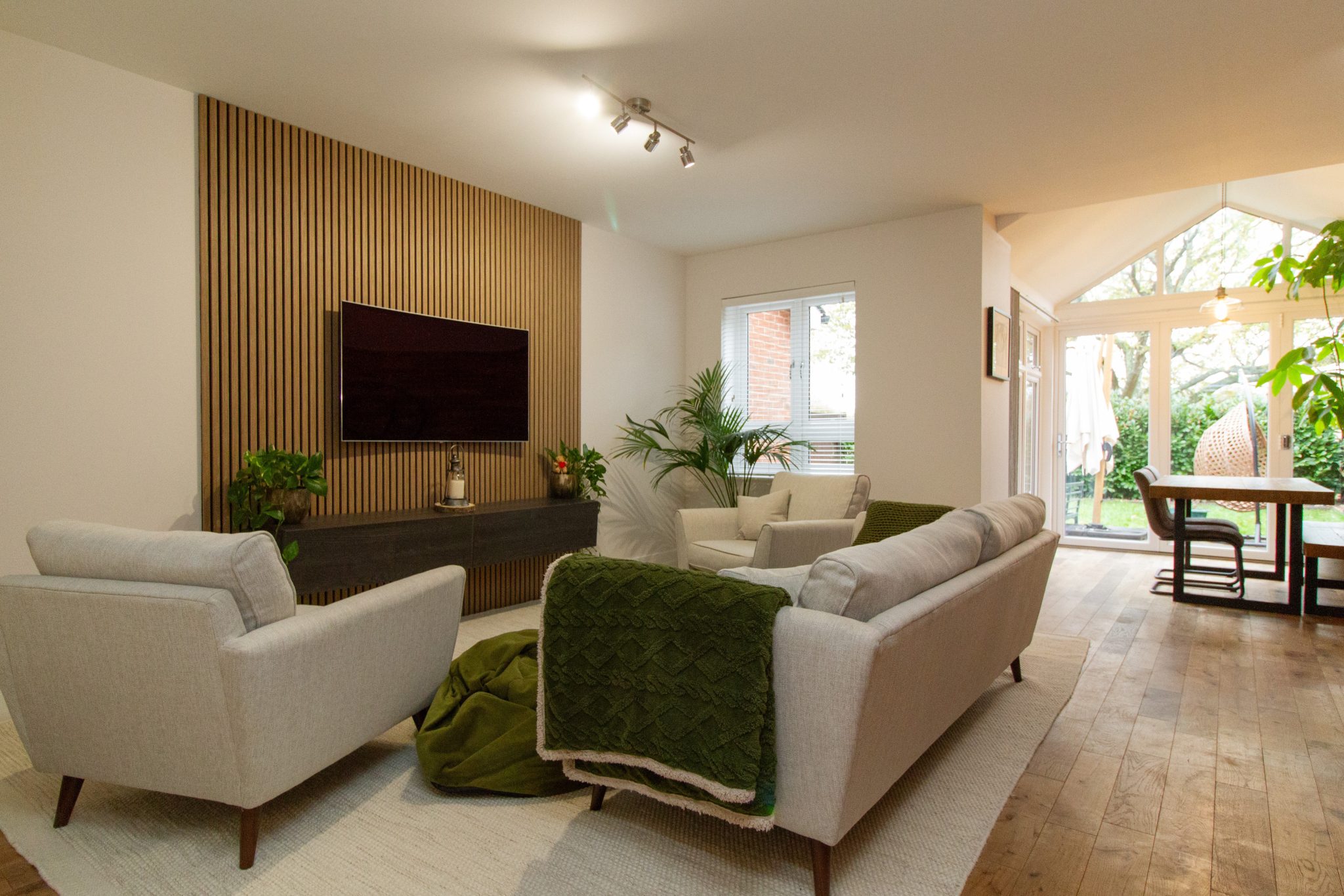 The ground floor is centred around a bright and expansive open plan living/dining room. This impressive space flows into a stunning rear extension featuring vaulted ceilings and full height glazing, creating a striking dining area with uninterrupted views over the garden. At the front of the property, the stylish kitchen/breakfast room provides ample workspace and storage, while a useful downstairs WC enhances everyday practicality.
