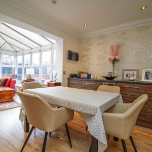 Externally the garden is mainly artificial grass with a patio area immediately to the rear. In addition there is a raised decked area which is ideal for Al-fresco style dining. The current owner has also converted part of the garage to create an ideal home office or garden room.
