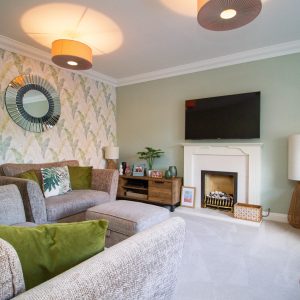 The ground floor consists of a living room which boasts a fireplace. A real feature of this home is the light and airy L-shaped open plan kitchen/diner/family room which is a great space for the whole family to enjoy. The kitchen is fitted with Shaker style units and appliances including oven, hob, extractor fan, fridge, freezer, dishwasher and washing machine. There is also a separate WC accessed via the hallway.